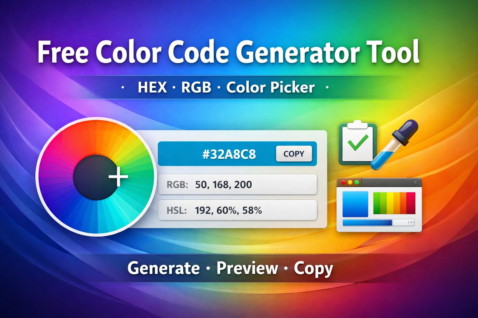 This free Color Code Generator tool lets users instantly generate, preview, and copy color codes in HEX, RGB, and other formats. It features a simple, user-friendly, and mobile-responsive design, making it perfect for designers, developers, and creators who need accurate color codes quickly and effortlessly.